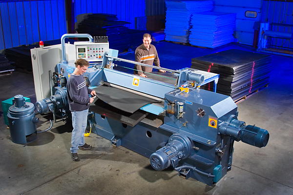 The machine is manually fed and can handle widths up to 76 inches, with no limit to the length of the sheet. For especially long sheets, the skiver can be fed from rollers. The skiver needs to be programmed to cut to a certain thickness, but not to the degree of a CNC machine or the waterjet cutter, as the saw blade remains stationary once programmed to its desired setting. Since the skiver can only cut horizontally, products may be cut to size on vertical saws, waterjet cutters or die cutters. Products produced from the skiver include high-density packaging, flotation devices like life jackets and sports matting and padding.